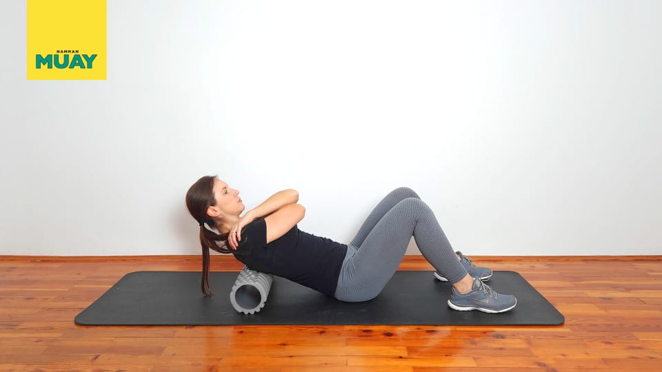 Relaxační protažení střední části zad pomocí pěnového válce k uvolnění svalového napětí a zlepšení pohyblivosti páteře. Ideální pro pracovníky v kanceláři i sportovce.